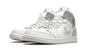 O Air Jordan 1 Mid “White Camo” apresenta uma estética neutra que combina com praticamente tudo no seu guarda-roupa. Na versão cano médio do primeiro tênis assinado por Michael Jordan, o cabedal do “White Camo” exibe sobreposições de couro granulado cinza. Couro branco liso pode ser encontrado no painel lateral, na biqueira perfurada e na gola. Uma sutil estampa camuflada em branco e cinza pontilha as laterais do tênis. A marca adicional aparece na forma de um logotipo “Wings” preto na gola e a insígnia Jumpman preta na etiqueta da língua de nylon branca.