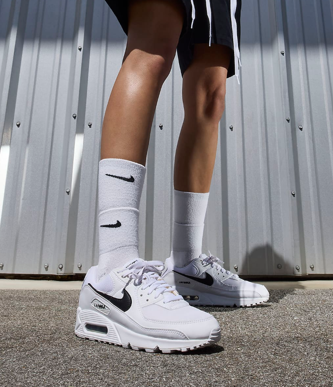 Mostre atitude com o Air Max 90 branco/preto. Simples em preto e branco, a malha respirável mantém seus pés frescos.