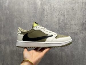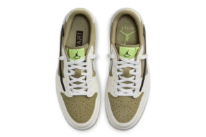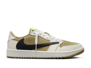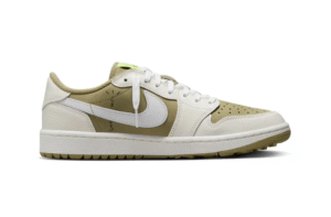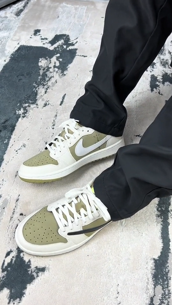O Travis Scott x Air Jordan O modelo 1 Low Golf ‘Neutral Olive’ atualiza a silhueta icônica com uma construção reformulada, feita para o campo de golfe. Uma etiqueta Jordan Golf tecida se destaca na língua em um tom verde limão, combinando com os logotipos Cactus Jack e Jordan Wings que adornam a aba traseira do pé esquerdo e direito.